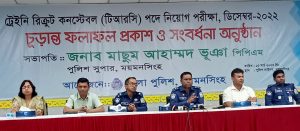 জেলা পুলিশের অতিরিক্ত পুলিশ সুপার রায়হানুল ইসলাম জানান, চাকুরি নয়, সেবা’ এই শ্লোগান সামনে রেখে এ বছর ট্রেইনি রিক্রুট কনস্টেবল (টিআরসি) পদে নিয়োগ পরীক্ষা প্রক্রিয়া শুরু করা হয়। গত ০১ ডিসেম্বর / ২০২২ বাংলাদেশ পুলিশে ট্রেইনি রিক্রট কনস্টেবল (টিআরসি) পদে জাতীয়ভাবে নিয়োগ বিজ্ঞপ্তি প্রকাশিত হয় । বিজ্ঞপ্তিতে বিভিন্ন কোটায় ময়মনসিংহ জেলার জন্য নিয়োগযোগ্য শূন্য পদ ১৯৫টি। এর মাঝে পুরুষ-১৬৬ জন এবং নারী-২৯। এর মাঝে ৬ হাজার ৬০৬ জন (নারী ও পুরুষ) চাকুরী প্রার্থী অনলাইনে আবেদন করেন। পরে ইভেন্টে ‘শারীরিক মাপ ও কাগজপত্র যাচাইকরণ’ পরীক্ষায় ১ হাজার ৭৯৪ জনের মাঝে ইভেন্টে দৌড়, পুশআপ, লং জাম্প এবং হাই জাম্পসহ ফিজিক্যাল শারীরিক সহনশীলতা পরীক্ষায় কোন দালাল চক্র যাতে পরীক্ষার্থীদের নিয়োগ পাইয়ে দেয়ার শর্তে টাকা পয়সা আত্মসাৎ করতে না পারে সে বিষয়ে থানার অফিসার ইনচার্জদেরকে সজাগ থাকতে বলা হয়। এছাড়া ডিবি সব সময় তৎপর ছিল।এর আগে টিম মসজিদ, মন্দির, গির্জা, বিভিন্ন ধর্মীয় ও সামাজিক প্রতিষ্ঠানের মাধ্যমে এবং বিট পুলিশিং সমাবেশে প্রান্তিক পর্যায়ের সকল শ্রেণী পেশার মানুষের নিকট স্বচ্ছ, নিরপেক্ষ, দুর্নীতি ও প্রভাবমুক্ত পদ্ধতি অনুসরন করে যোগা প্রার্থী বাছাই করে পুলিশ নিয়োগের সংবাদটি পৌঁছে দেয়া হয়। একটি স্বচ্ছ নিয়োগ পদ্ধতি অনুসরন করে যোগ্য প্রার্থীদের বাছাই করতে জনসচেতনতামূলক কার্যক্রম আমাদের কাজকে সহজ করে তোলে। এ জন্য তিনি জেলার সামাজিক, রাজনৈতিক, গণমাধ্যম ও অন্যান্য শ্রেণী পেশার মানুষের প্রতি বিশেষভাবে কৃতজ্ঞতা জানান। একটি স্বচ্ছ, আধুনিক, প্রতিযোগিতামূলক ও সময়োপযোগী পদ্ধতি অনুসরণ করে প্রাথমিকভাবে নির্বাচিত প্রার্থীদের মধ্যে পুরুষ সাধারণ কোটা-১০৩ জন, মুক্তিযোদ্ধা কোটা-৩৯ জন, পুলিশ পৌষ্য কোটা-১৭ জন, আনসার ও ভিডিপি কোটা-১ জন, ক্ষুদ্র নৃ-গোষ্ঠী কোটা-০৪ জন এবং এতিম কোটা-২ জন। পুলিশ সুপার আরো বলেন, নির্বাচিত প্রার্থীদের মধ্যে ৬৮ জন প্রার্থীর পরিবার চরমভাবে অসহায় ও দারিদ্র্য সীমার নিচে জীবন-যাপন করেন। তাদের মধ্যে ১২ জনের পিতা পেশা অটোরিক্সা ও সিএনজি চালক, কৃষক, দিনমজুর, বাস্তচ্যূত। শুধুমাত্র প্রার্থীরা তাদের মেধা যোগ্যতার ভিত্তিতে নির্বাচিত হয়েছেন। এছাড়া শিক্ষাগত যোগ্যতায় ১৯ জন প্রার্থী জিপিএ-৫.০০ প্রাপ্ত । তিনি আরো বলেন, এতিম কোটায় সরকারী শিশু পরিবার (বালক) ছোটবেলা থেকে বেড়ে উঠা ২ জন নিয়োগ প্রাপ্ত হয়েছেন।