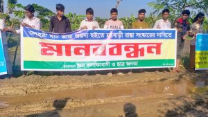 পরিস্থিতির উত্তরণে দ্রুত সড়ক সংস্কারের দাবিতে এলাকাবাসীর উদ্যোগে মানববন্ধন অনুষ্ঠিত হয়। মানববন্ধনে বক্তারা দ্রত সংশ্লিষ্ট দফতরের হস্তক্ষেপ কামনা করেন।